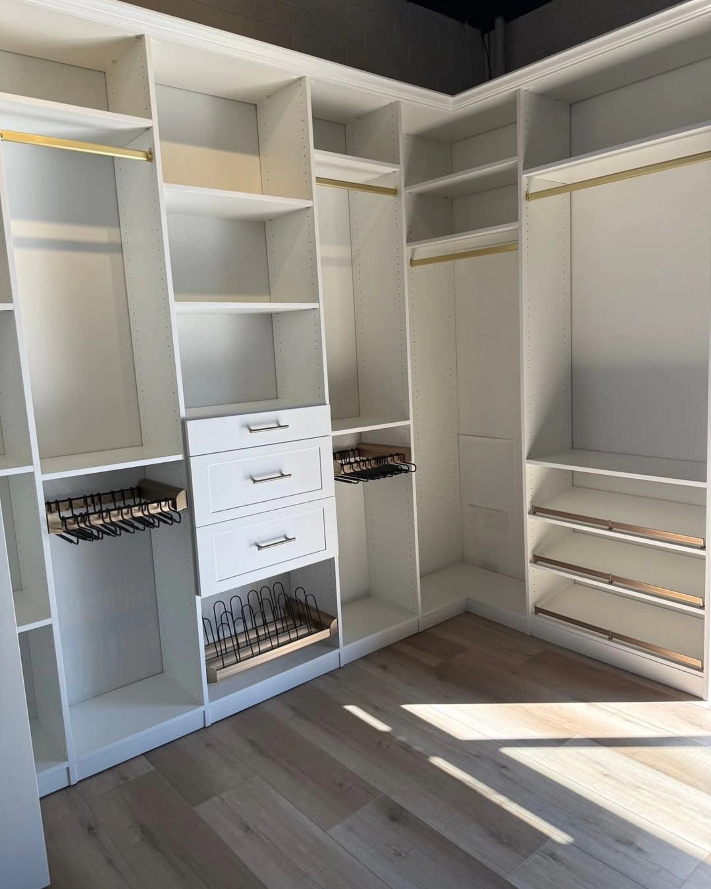 Every detail—from shelving and hanging rods to shoe racks and accessory drawers—is customized to fit your space, style, and daily needs.